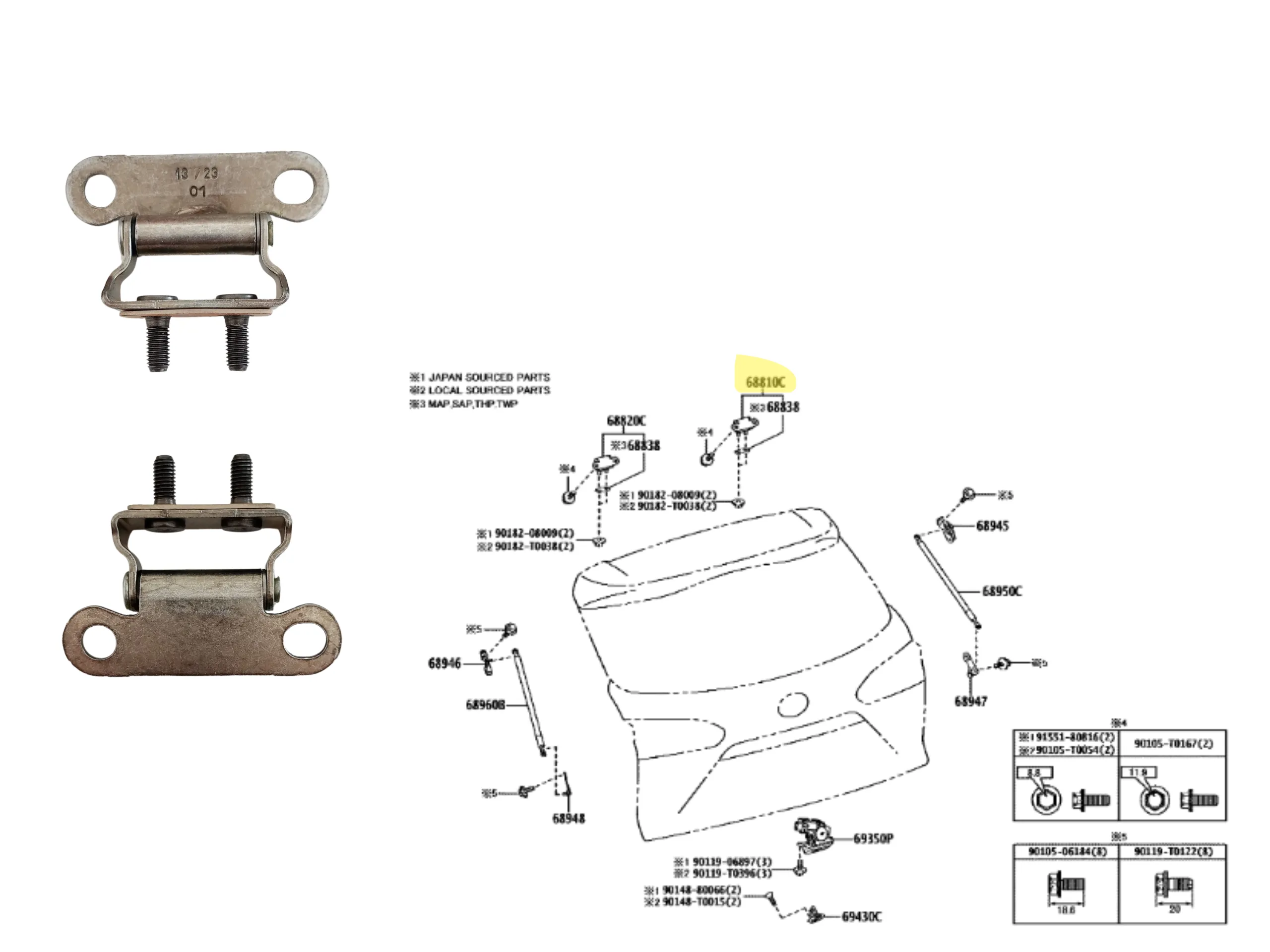 BISAGRA PORTON TRASERO COROLLA CROSS 2021- LH/RH
