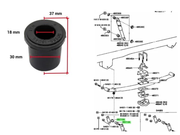 BUJE ELASTICO HILUX 92/04 CHICO 4X2 TRASERO( 8 )/ 4X4 TRASERO ( 4 ) / DELANTERO 91-93 4X4 ( 8 )