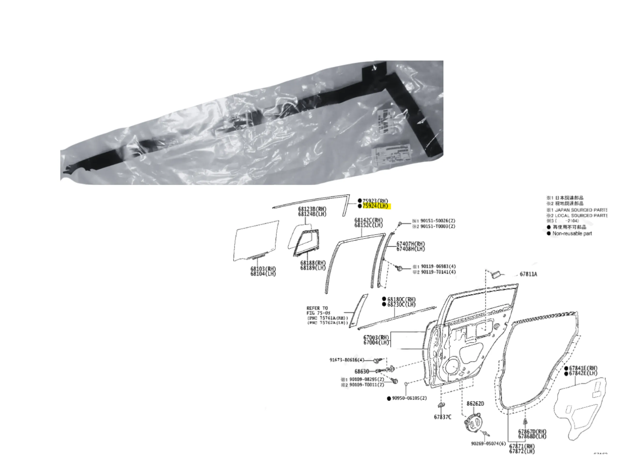 CALCO MARCO SUPERIOR PUERTA TRASERA LH YARIS 5 PUERTAS 2018-